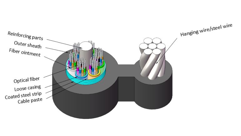 Описание продукта: Структура оптического кабеля заключается во вставке одномодовых или многомодовых оптических волокон в свободную трубку из высокомодульного пластика, заполненную водонепроницаемым компаундом. Центром сердечника кабеля является металлический армирующий элемент. Для некоторых оптических кабелей с определенным количеством жил структура оптического кабеля заключается во вставке одномодовых или многомодовых оптических волокон в свободную трубку, заполненную водонепроницаемым компаундом внутри. Экструдируется и оборачивается вокруг металлической центральной армирующей части полиэтиленовый амортизационный слой. Свободные трубки (и заполняющие тросы) скручиваются вокруг центральной армирующей части, образуя компактный и круглый сердечник кабеля. Зазоры внутри сердечника кабеля заполняются водоблокирующим компаундом. Снаружи экструдируется и оборачивается стальная полиэтиленовая оболочка, и одновременно устанавливаются стальные прядевые подвесы для формирования кабеля.