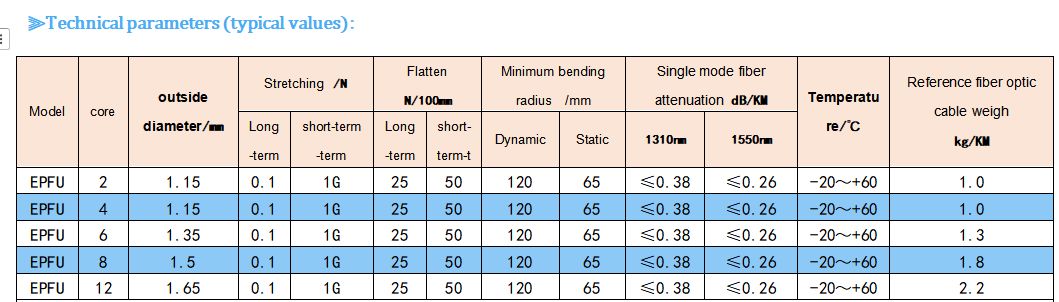 Конструкция кабеля состоит из плотно расположенных одномодовых или многомодовых волокон (которые могут содержать волокна-заполнители), образующих регулярную конфигурацию. После отверждения смолой в волоконный пучок, пучок располагается по центру и экструдируется оболочкой из полиэтилена высокой плотности.
